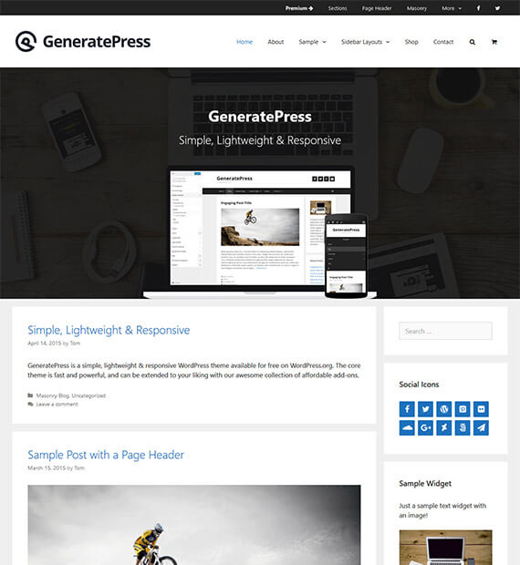 Additionally, Generatepress theme is fully responsive, can be translated into more than 25 languages, and uses HTML/CSS. It?s also backed by a solid community. Other advanced features in the theme include 5 navigation locations, 9 widget areas, dropdown menus, microdata integration, etc.