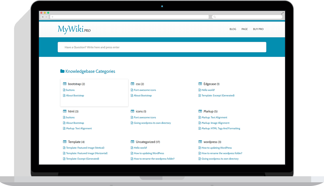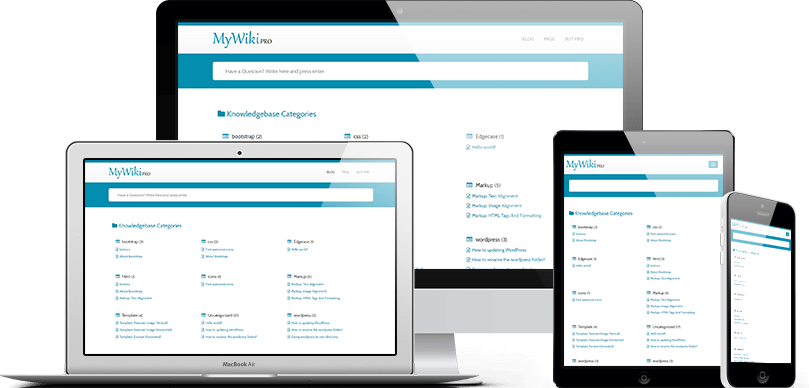 MyWiki is a simple, lightweight and fast loading WordPress Theme for individuals and companies to manage their Knowledge-base or Support or Wiki or Frequently Asked Questions (FAQs) through a WordPress website.
