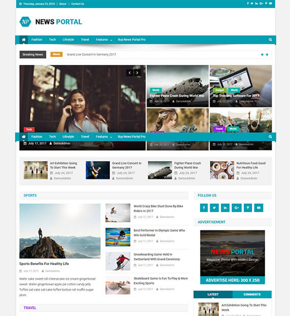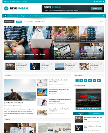News Portal is a creative WordPress theme, suitable for online newspapers, publishing houses, magazines, and personal blogs.