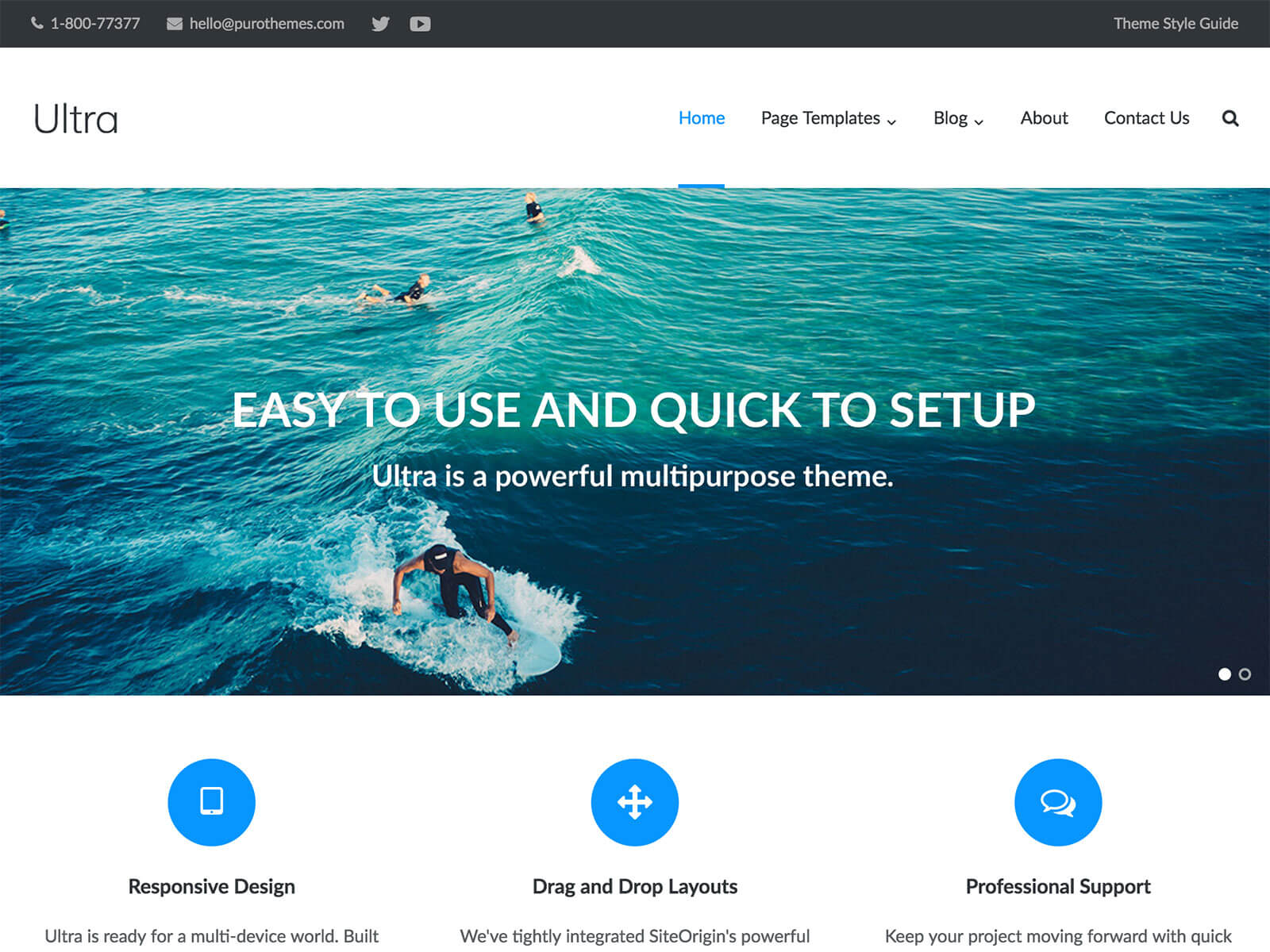 Create detailed layouts without writing a line of code using SiteOrigin’s drag and drop Page Builder plugin. Start your pages off with a bold full-width Smart Slider and keep users engaged with a sticky menu. Fast, responsive, SEO optimized and backed by professional level support, Ultra is ready for your next project. For assistance, check out our theme documentation.